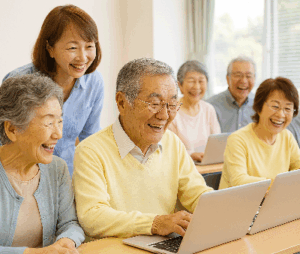 「シニア数名がパソコン教室でレッスンしている画像を作って」とCopilotに依頼すると、2分ほどかかって画像ができあがりました。